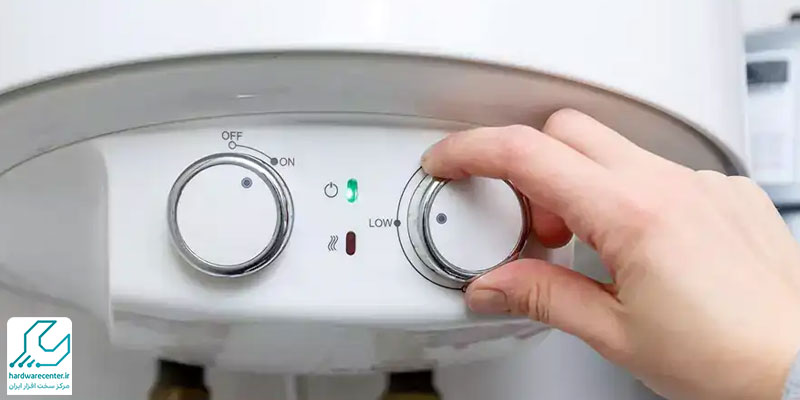 دسته تنظیم دمای آب مصرفی: با چرخاندن در جهت عقربههای ساعت دما کاهش و در جهت خلاف آن دما افزایش مییابد.